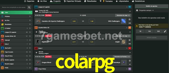 O colarpg oferece uma grande seleção de opções de apostas em e-sports com probabilidades competitivas